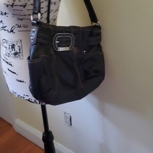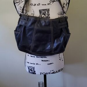 Tignanello Black Silver Leather Hobo Bag. Super soft Leather. Worn in but no signs of damage. Striped satin colorful interior in great shape as well. Good Pre-Owned Condition