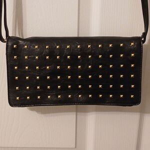 Tignanello Black and Gold Crossbody Bag with Sleek Design Leather