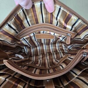 Tignanello Brown Cream Vintage Top Handle Shoulder Strap Bag Purse Multi Pocket