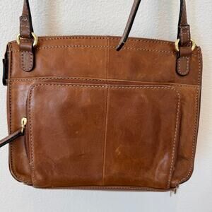 Tignanello Brown Leather Crossbody Bag Adjustable Strap Tassel Zip Closure