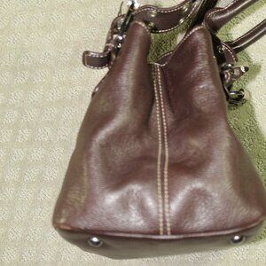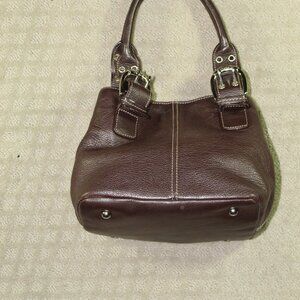 Tignanello Chocolate Brown Leather Purse Shoulder Bag Buckles Double Handles