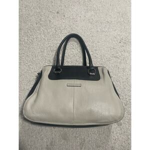 Tignanello Colorblock Leather Shoulder Bag Purse Handbag Black Cream