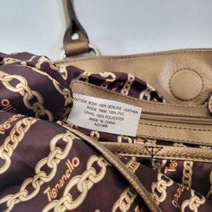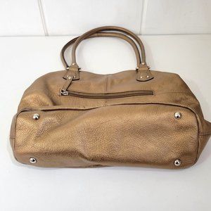 It measures 12" x 5" x 10" with a 10" strap drop and it has silver metal buckles.