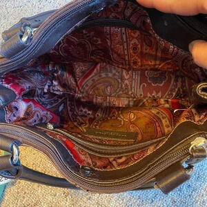 Tignanello Crocodile Print Body Genuine Leather Brown Satchel Shoulder Purse Bag
