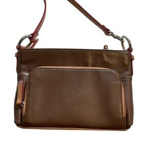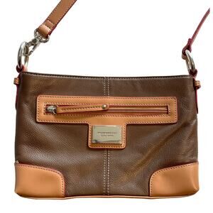 Tignanello Crossbody Bag Womens Brown & Natural Leather Colorblock Organizer