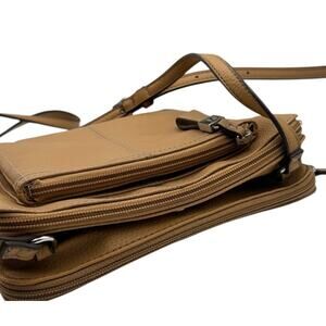 Tignanello Functionista Crossbody Bag Camel Pebbled Leather Convertible Handbag