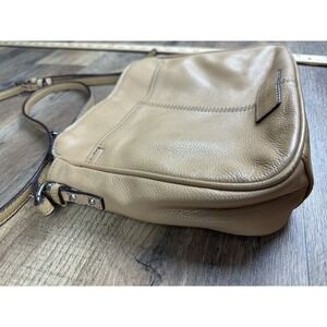 Tignanello Genuine Leather Crossbody Shoulder Bag Beige 3 Compartments Pockets