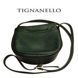 Tignanello Genuine Leather Green Saddlebag Crossbody Purse