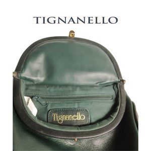 Vintage Tignanello Genuine Leather Green Saddlebag Crossbody Purse.