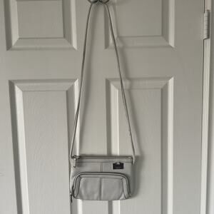 Tignanello Genuine Pebbled Leather Multi-Pocket Crossbody Purse Bag Bone