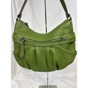 Elevate your accessory collection with this gorgeous and versatile Tignanello hobo bag. Crafted from genuine leather in a vibrant Kelly Green, this shoulder bag is the perfect statement piece to add a pop of color to any outfit. Its classic crescent shape and functional design make it an ideal everyday companion.