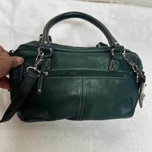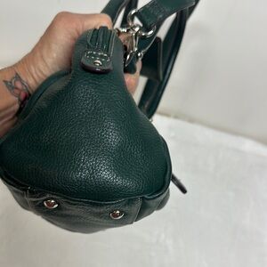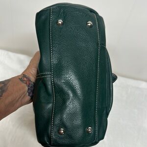 This Tignanello satchel in a rich green hue combines timeless elegance with practical versatility. Crafted from smooth leather, it features both top handles and an adjustable shoulder strap for varied carrying options. Its structured design ensures it remains a stylish companion for everyday use. See all photos as they are part of description