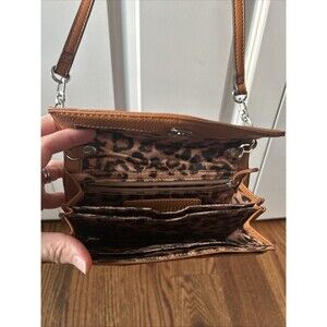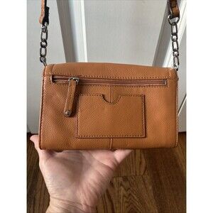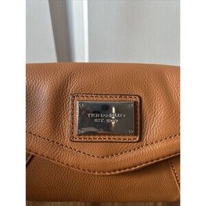 The Tignanello Leather Crossbody is a stylish and versatile handbag designed for women. Made from pebble grain leather in a caramel exterior color with gold hardware, this medium-sized bag features a magnetic and snap closure. The inside lining is a fabric with an animal print pattern, adding a touch of sophistication to the overall design. This crossbody also comes with a detachable strap, making it perfect for on-the-go use. With its practical yet fashionable design, the Tignanello Leather Crossbody is a must-have accessory for any woman's collection.