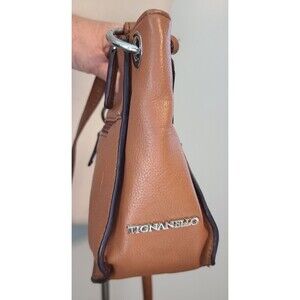 Tignanello Leather Crossbody Shoulder Strap Bag Brown Logo Charm Purse Capsule