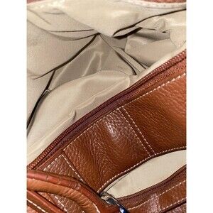 It features a zip closure, leather handle/strap material, and brown hardware color. The bag is large, measuring 14 inches in width and 11 inches in height. The lining material is also made of leather, and the lining color is brown. The bag is part of the Tignanello product line and is perfect for any woman looking for a stylish and functional shoulder bag.
