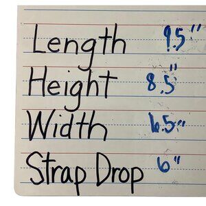 Length = 9.5", Height = 8.5", Width = 6.5", Strap Drop = 6"