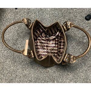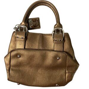 Tignanello Metallic Gold Bronze Leather Satchel Bag Chain-Print Lining