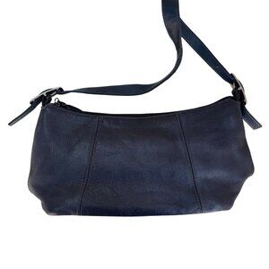Tignanello Navy Leather Adjustable Strap Silver Color Hardware Zip Shoulder Bag