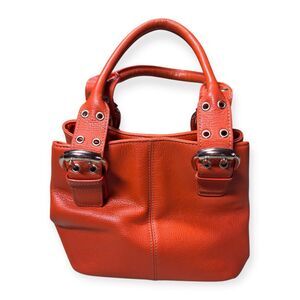 Tignanello Orange Genuine Leather Hand Bag With Adjustable Buckles/Straps VTG