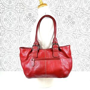 Tignanello Perfect 10 French Bag Lipstick Red Leather Double Handle Satchel