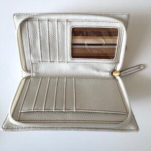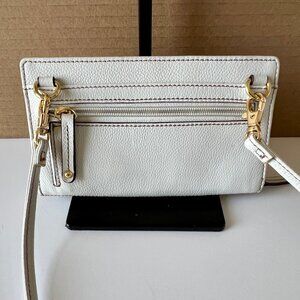 Tignanello Perfect Pockets Organizer Leather Crossbody, Cream, Detachable Strap