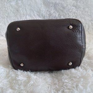 Tignanello Brown Genuine Leather Purse. Adjustable double handle with magnetic closure. Silver hardware. Generous size inside with zip pocket and 2 slip pockets. 10"W x 7-1/2"H x 7"D with 7-1/2" handle drop. Good condition (small blemish on one side - see picture).
