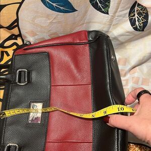 Callouts: There is some staining around the inside zipper and slight corner wear on outside