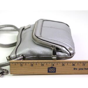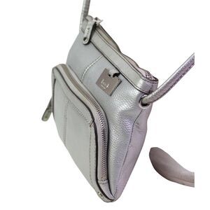 Tignanello SILVER GENUINE LEATHER SMALL TRAVEL ORGANIZER X-BODY SHOULDER BAG HANDBAG PURSE