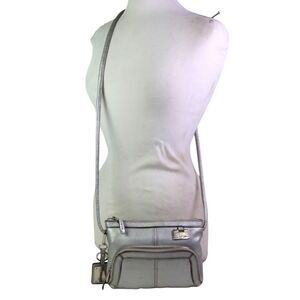 Tignanello SILVER GENUINE LEATHER ORGANIZER X-BODY SHOULDER BAG HANDBAG PURSE