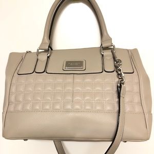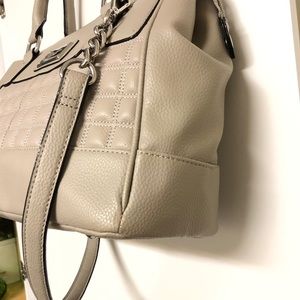 Beautiful Classy Creamy Beige Quilted Leather Satchel Handbag Purse with Crossbody Strap included!