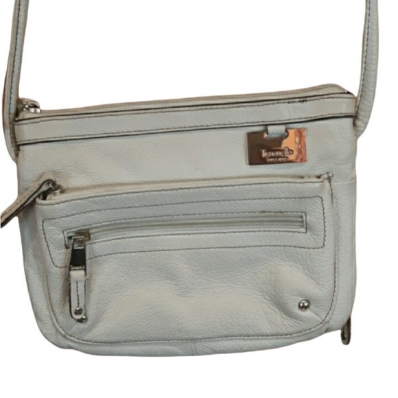 Tignanello Small White Pebbled Leather Crossbody | Organizer Purse Bag