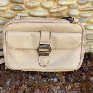 Tignanello Soft Pebbled Light Tan Leather Camera Crossbody. VGUC!