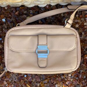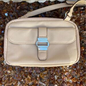 Tignanello Soft Pebbled Light Tan Leather Camera Crossbody. VGUC!