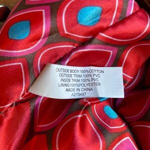 Add a pop of color to your outfit with this vibrant Tignanello hobo bag! Features a bold tropical floral print with red geometric accents, genuine tan leather trim and handle, and gold-tone hardware. Spacious interior with multiple pockets for easy organization. Perfect for summer or vacation style!