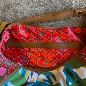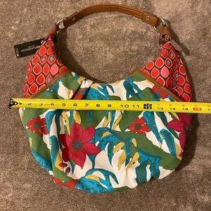 Tignanello Tropical Floral Hobo Bag with Tan Leather Trim NWT