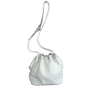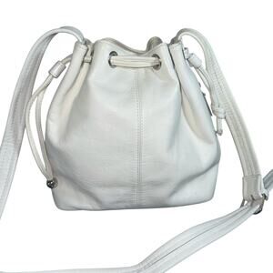 Tignanello White Leather Drawstring Bucket Bag Crossbody Shoulder