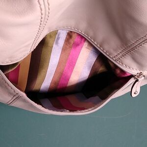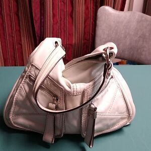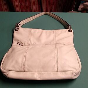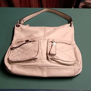 Tignanello White Leather Large Shoulder bag Front Zipper pockets Cottagecore