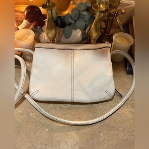 Tignanello White with Gold Signature lining Crossbody Bag with built in wallet.