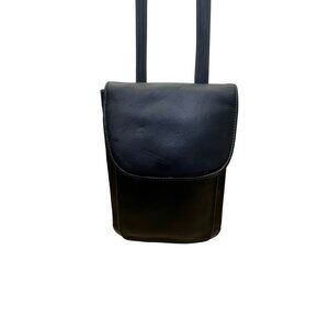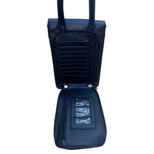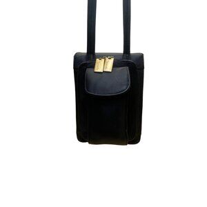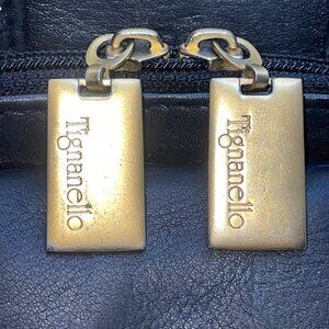 Tignanello Women’s Black Genuine Leather Adjustable Strap Gold Zip Crossbody Bag