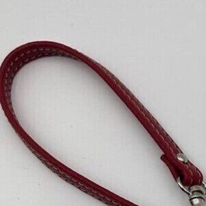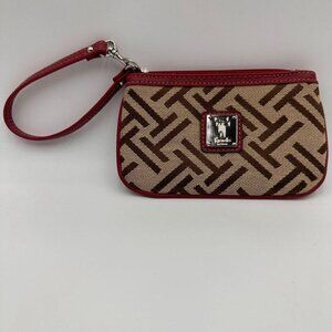 Tignanello Womens Wristlet Coin Purse Brown Logo Print Red Trim Silver Tone