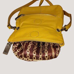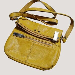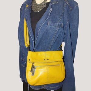 Tignanello Yellow Leather Crossbody Bag Vintage Adjustable Strap Compartments