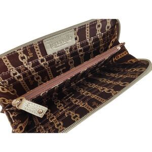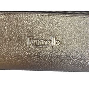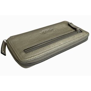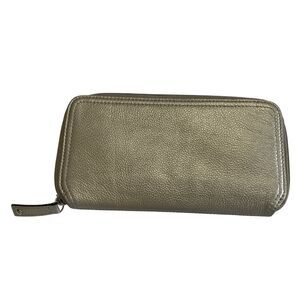 Tignanello Continental Zip Around Wallet Champagne Metalic Leather Wallet 8.5” x 4.25” 2 bill compartments, coin compartment, 12 card slots, fits the phone , Genuine Leather!!