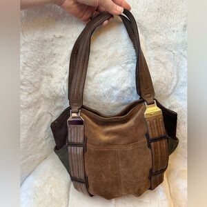 Tignanello brown suede leather colorblock shoulder bag purse w magnetic snap. H