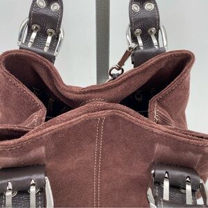 Tignanello dark brown suede mini tote bag