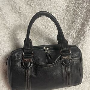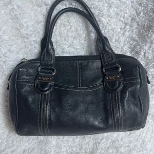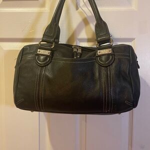 Tignanello leather black Medium Satchel silver tone hardwares.