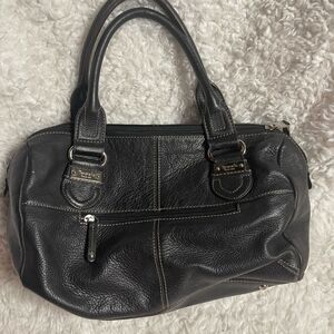 Tignanello leather black Medium Satchel silver tone hardwares.back zipper pocket, front pocket, top zipper the inside lining has a side zipper two side pockets. Pre owned in good used condition. Normal wear clean no tear . See all pictures any questions please message.Z1