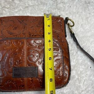 Tignanello leather brown embossed crossbody bag with faux leather trim &…