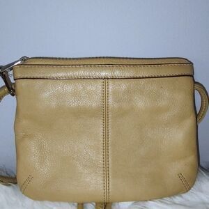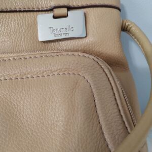 Beautiful leather on this Tignanello crossbody bag. Front zip pocket adds dimension. Great neutral that goes with everything.