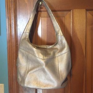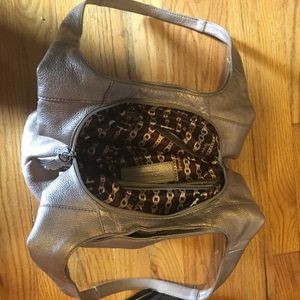 Never used, perfect condition. 3 compartments with inside pockets. Rare metallic color