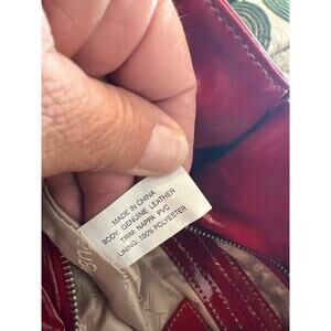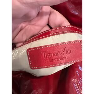 Tignanello red leather shoulder bag. Inside is clean. The bottom has some marks on it I have shown in a picture. Measures about 16x10”.